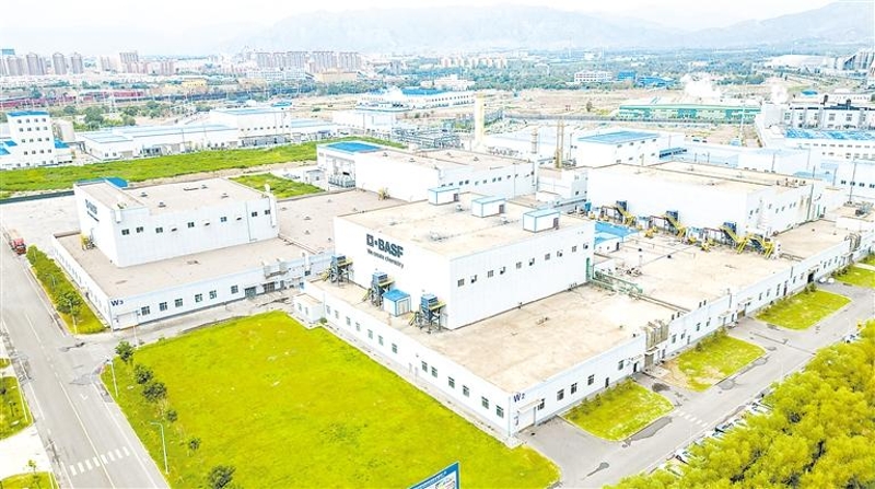 俯瞰巴斯夫杉杉电池材料(宁夏)有限公司厂区。石嘴山是宁夏工业的摇篮,有25个工业门类,是宁夏工业门类最多、产业体系最完备的地级市。