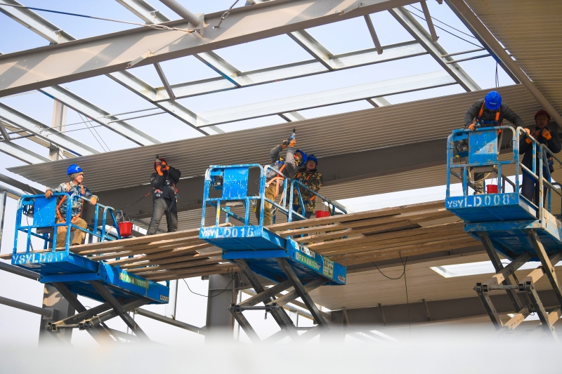 2月20日,银川市兴庆区掌政镇鱼菜共生农文旅产业融合示范园项目建设现场,工人在安装顶板。该项目已有4个园区开工建设,将传统池塘的“开放式散养”变为“集约化圈养”,不仅能确保渔业养殖尾水达标排放甚至零排放,提高水资源利用率,还有助于提升农业产业融合水平,推动高标准现代农业发展。记者 马楠 王洋 实习生 孙莎莎 摄
