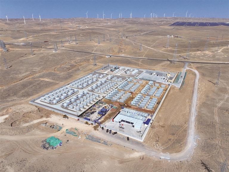 青龙山200兆瓦/400兆瓦时新能源共享储能电站和远处的风电、光伏项目交相辉映,最终经过电网将绿电输送到千家万户。3月20日,宁夏青龙山200兆瓦/400兆瓦时新能源共享储能电站示范项目全容量并网,至此宁夏储能并网超过500万千瓦。 (史慧敏 摄)