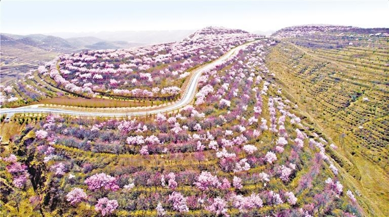 彭阳县漫山遍野的山花,不仅增色风景,也收获“丰景”。 记者 李宏亮 摄