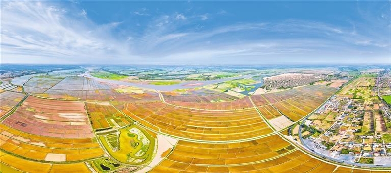 6月2日,航拍下的黄河(银川段)。近年来,银川市深入践行“源头治理、中段提升、末端兜底”的系统治理方略,统筹推进流域生态屏障建设。在源头防控方面,强化水土保持与植被修复,减少入河泥沙负荷;中段整治工程中,通过实施黄河防洪能力提升工程,有效遏制了河势游荡与岸线坍塌风险;末端治理则依托河湖水系连通与水环境综合治理项目,构建了多层次生态缓冲带,实现污水零直排与湿地净化全覆盖。记者 马楠 摄