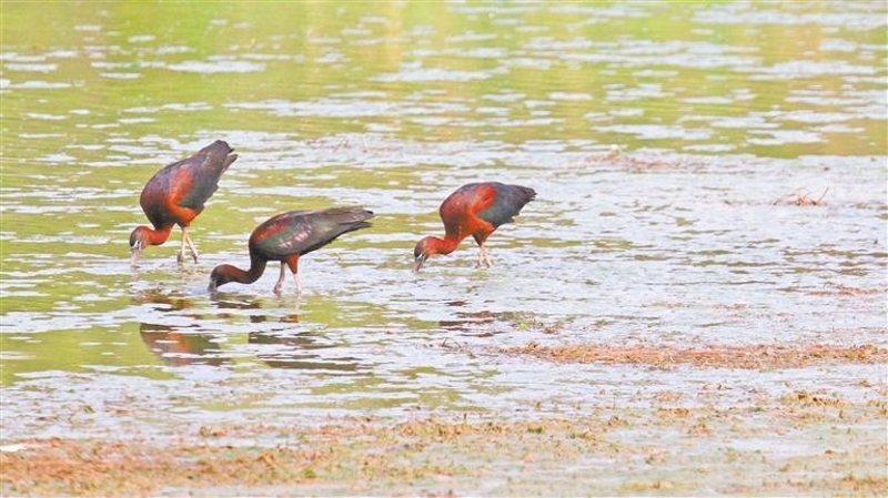 近日,3只国家一级保护野生动物彩鹮现身吴忠黄河国家湿地公园。今春以来,吴忠市在日常监测时先后发现国家一级重点保护鸟类2种,全市累计监测记录鸟类数量增至245种。宁夏日报报业集团全媒体见习记者 李霞霞 摄