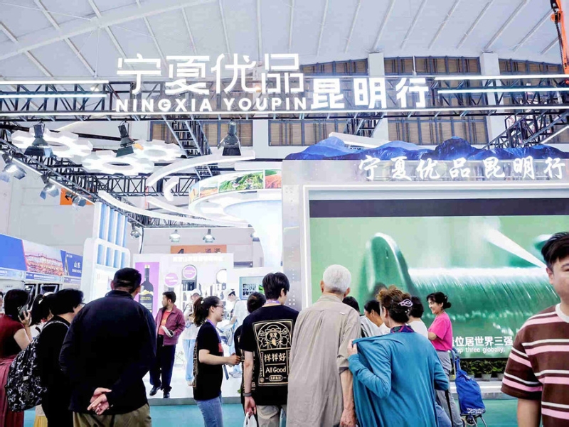 6月19日,观众在宁夏特装展区观展。当天,第9届中国-南亚博览会暨第29届中国昆明进出口商品交易会在云南省昆明市开幕。自治区商务厅与石嘴山市携手联动,精心组织20家特色优势企业,以“宁夏优品昆明行”(石嘴山专场)活动为载体,亮相昆明·滇池国际会展中心,设置占地144平方米的宁夏特装展区,展示宁夏独特地域特色和产业魅力。记者 杨娟 摄