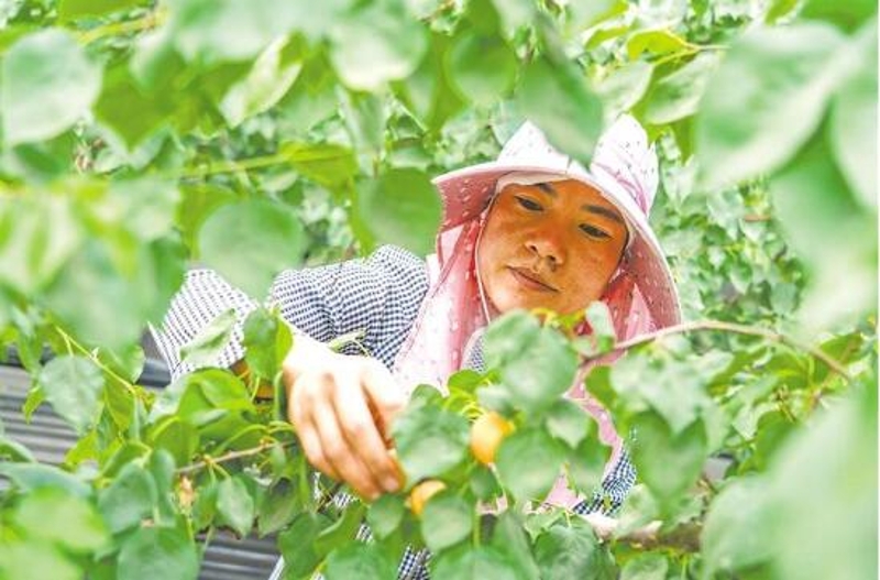 在昊苑村采摘园的1号温棚里,技术员刘元丽手法娴熟地检查着吊干杏枝干。“村上8个棚的樱桃树、杏树都归我负责,育苗、拉枝、温度调控,样样都得操心好。”她利落地抹了把汗,“一个月稳稳当当3600块,这日子过得踏实。”