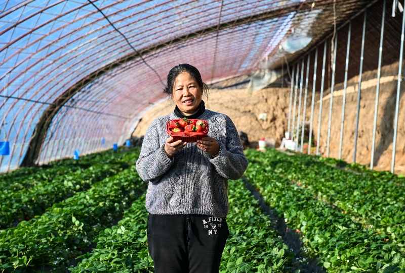 1月6日,中卫市沙坡头区东园镇赵桥村村民蔡进平将刚采摘的草莓分装、打包,准备发往周边商超。近年来,赵桥村引导农户发展特色种植,草莓大棚渐成规模,不仅让许多村民在家门口实现增收,也为冬闲时的劳动力提供了就业机会。