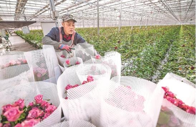 这座占地3.5万平方米的智能玻璃温室,是兴庆区花卉产业发展的一个缩影。棚内的切花玫瑰不仅颜值高、品质优,产量也十分可观,日采摘量可达1.2万枝。这些带着宁夏暖意的玫瑰,不仅充盈了银川本地的鲜花市场,还远销北京、西安、兰州、西宁等北方城市,让更多人在隆冬时节也能邂逅这份浪漫。