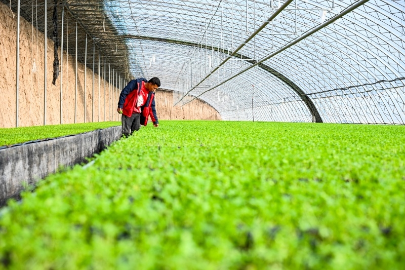 1月21日,位于中卫市沙坡头区柔远镇的丰盈先行农业科技有限公司育苗大棚内,技术员在查看种苗长势。近年来,该镇聚力发展设施农业,建成永久性蔬菜大棚2476栋,吸引金城种业、塞上江南、丰盈农业等10家育苗企业集聚,形成规模化种苗培育集群。目前,全镇年育苗量1.6亿株,占沙坡头区育苗总量的60%以上。宁夏日报报业集团全媒体记者王强 摄