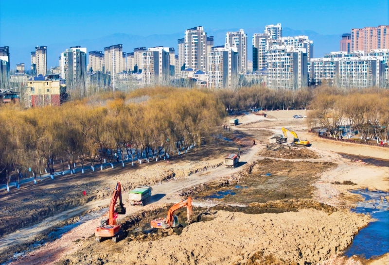 2月9日,典农河幸福河湖建设项目(银川段)施工现场。作为自治区幸福河湖建设重点工程,该项目以流域系统治理为核心,通过堤岸生态化改造、河道修复等工程,完善河湖功能,提升流域品质,推动滨水空间升级为“可漫步、可休闲、可互动”的城市活力带。记者 马楠 摄