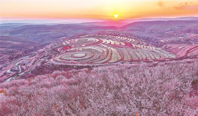 3月31日,六盘山山花烂漫,落日为山野镀上暖金柔光。4月2日,第二十二届宁夏六盘山山花节将在彭阳县开幕。 宁夏日报报业集团全媒体记者 韩胜利 摄
