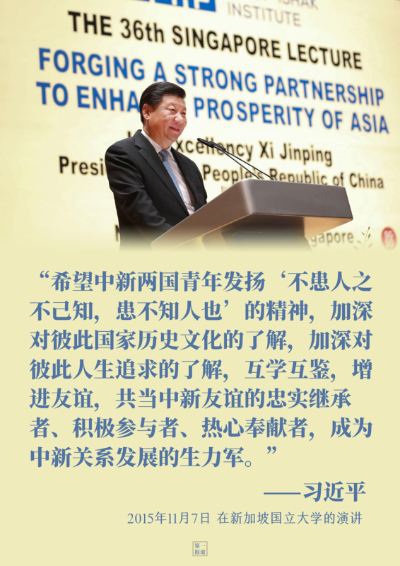2015年11月,在新加坡国立大学,习主席这样寄语中新两国青年——