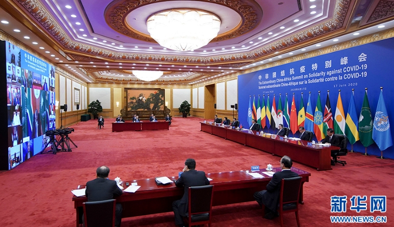 6月17日晚,习近平在北京主持中非团结抗疫特别峰会并发表题为《团结抗疫共克时艰》的主旨讲话。 新华社记者 丁海涛 摄
