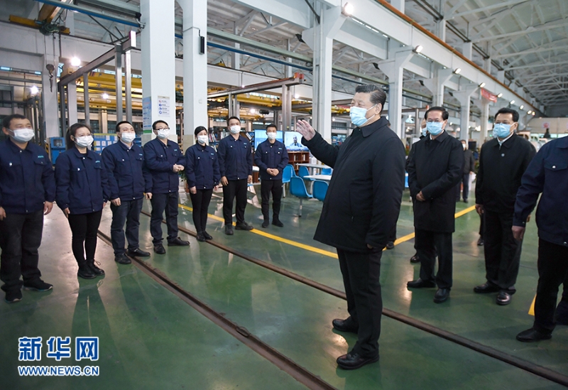 在浙江,习近平来到生产线旁,同工人们亲切交谈,询问大家返岗途中是否都顺利、复工后生产生活还有哪些困难、工资发放是否正常。他要求确保市民的“米袋子”“菜篮子”货足价稳,确保农民的“钱袋子”富足殷实。
