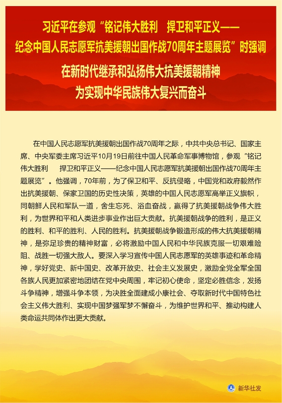 习近平在参观“铭记伟大胜利捍卫和平正义——纪念中国人民志愿军抗美援朝出国作战70周年主题展览”时强调