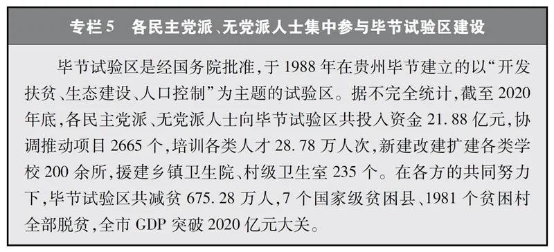 各民主党派、无党派人士紧紧围绕国家中心工作,充分发挥人才荟萃、智力密集、联系广泛等优势,积极参政议政、建言献策,为推进国家各项事业发展作出了重要贡献。