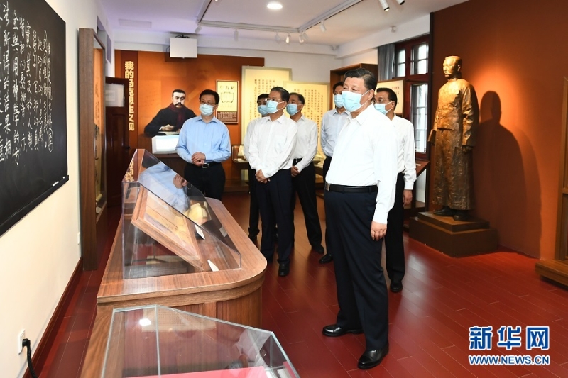 25日下午,习近平带领中央政治局同志来到北大红楼,参观“光辉伟业红色序章——北大红楼与中国共产党早期北京革命活动主题展”,重温李大钊、陈独秀等开展革命活动、推动马克思主义在中国早期传播、酝酿和筹建中国共产党等革命历史。展厅内,一张张图片、一件件文物,全面展现了那个时期的光辉历史。习近平不时停下脚步,询问相关细节。他指出,北大是新文化运动的中心和五四运动的策源地,最早在我国传播马克思主义思想,也是我们党在北京早期革命活动的历史见证地,在建党过程中具有重要地位。要加强红色资源保护和利用,尊重历史事实,准确评价历史,正确学史用史。