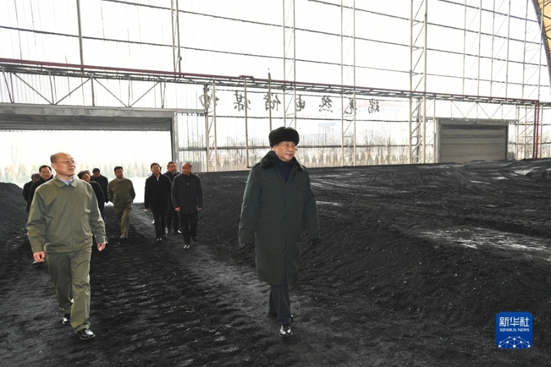 1月26日至27日,中共中央总书记、国家主席、中央军委主席习近平来到山西,看望慰问基层干部群众。这是27日下午,习近平在山西瑞光热电有限责任公司储煤场察看煤场储煤情况。新华社记者 谢环驰 摄
