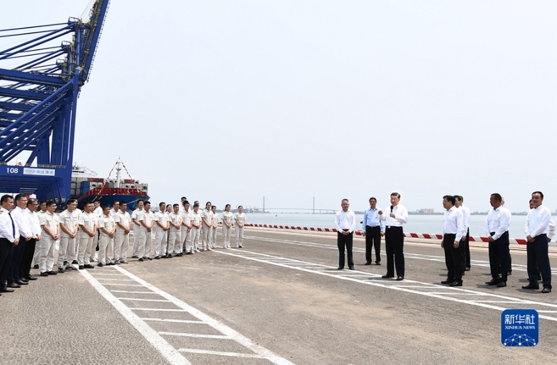 随后,习近平来到洋浦国际集装箱码头小铲滩港区,了解港口建设发展情况,同现场作业人员、挂职干部代表等亲切交流。习近平强调,振兴港口、发展运输业,要把握好定位,增强适配性,坚持绿色发展、生态优先,推动港口发展同洋浦经济开发区、自由贸易港建设相得益彰、互促共进,更好服务建设西部陆海新通道、共建“一带一路”。他指出,党中央选派干部来自由贸易港挂职,既体现了党中央对自由贸易港建设的关心和支持,也是对干部的培养锻炼,要发挥挂职干部的积极作用,让他们在基层一线增长才干。