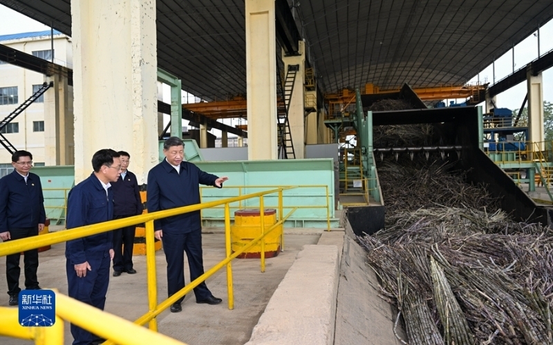 14日下午,习近平到来宾市考察调研。在国家现代农业产业园黄安优质“双高”糖料蔗基地,习近平察看万亩甘蔗林和机械化作业收割场景,听取基地情况介绍。他走进甘蔗林,详细了解甘蔗良种繁育技术要领,同蔗农、农机手和农技人员亲切交流。习近平指出,广西是我国蔗糖主产区,要把这一特色优势产业做强做大,为保障国家糖业安全、促进蔗农增收致富发挥更大作用。要积极培育和推广良种、提高机械化作业水平,建设好现代农业产业园。要探索建立更加稳定的利益联结机制,让广大农民共享农村改革和发展成果。他祝愿乡亲们的生活像甘蔗一样甜蜜。