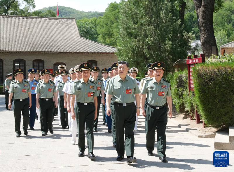 6月17日至19日,中央军委政治工作会议在陕西延安召开。中共中央总书记、国家主席、中央军委主席习近平出席会议并发表重要讲话。这是17日下午,习近平带领军委一班人和各部门各单位主要负责同志瞻仰王家坪革命旧址。新华社记者 李刚 摄