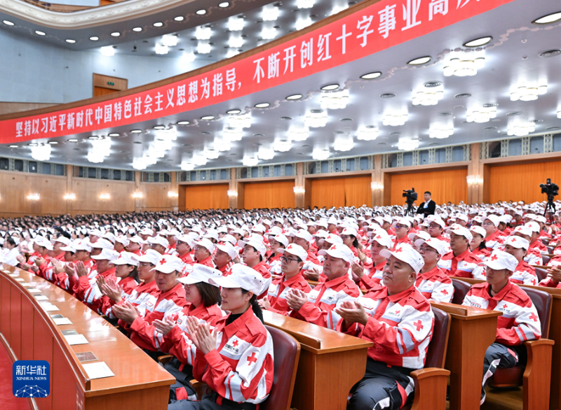 10月9日,中国红十字会第十二次全国会员代表大会在北京开幕,会上传达中共中央总书记、国家主席、中央军委主席习近平致信。国家副主席韩正出席开幕式并会见全体代表。这是大会会场。新华社记者 高洁 摄