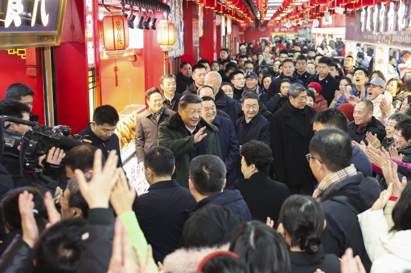沈阳大东副食品商场历史悠久,富有特色的年节商品琳琅满目。23日上午,习近平来到这里,察看多家店铺,频频同店主和顾客交流,详细了解节日期间市场供应情况。大家见到总书记都十分激动,连声欢呼“总书记好”!习近平对大家说,“菜篮子”、“米袋子”、“果盘子”是民生大事,现在物质丰裕,过年团圆更要让大家吃得好、吃得健康。