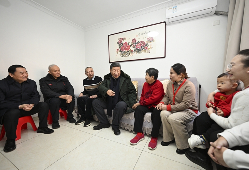 随后,习近平来到经过集中改造的大东区长安街道长安小区,走进四世同堂的郎素兰家中看望。得知小区改造后居住环境明显改善,各方面服务保障到位,习近平表示肯定。他指出,城市更新要因地制宜,同社区建设结合起来,一切着眼于便民、利民、安民,特别要更好地关心呵护“一老一小”。