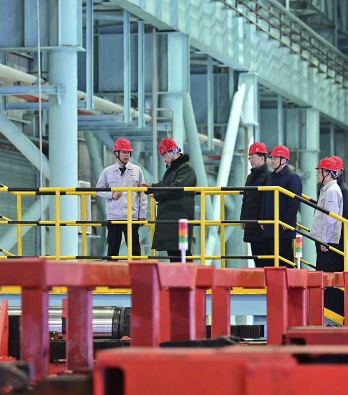 1月22日至24日,中共中央总书记、国家主席、中央军委主席习近平冒着严寒来到辽宁,看望慰问基层干部群众。这是23日下午,习近平在本溪市考察本钢板材冷轧总厂第三冷轧厂车间。新华社记者 翟健岚 摄