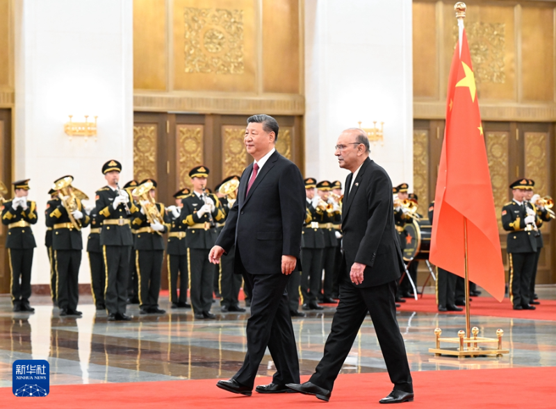 扎尔达里表示,巴基斯坦和中国是亲密邻邦,更是全天候的好朋友、好伙伴。巴中友谊历经风雨,两国人民的心始终紧紧相连。无论形势如何变化,巴方都将毫不动摇同中方站在一起。巴方感谢中方为巴经济社会发展提供无私帮助,愿学习中国成功经验,推动中巴经济走廊和各领域合作高质量发展,助力巴基斯坦实现工业化和现代化。在习近平主席英明指引下,中国在国际事务中发挥越来越大的引领作用,日益成为维护世界和平、稳定、繁荣的重要力量。巴方愿同中方密切配合,坚持多边主义,维护自由贸易,促进两国和广大发展中国家的共同利益。