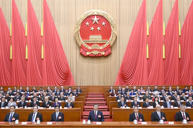 3月11日下午,第十四届全国人民代表大会第三次会议在北京人民大会堂闭幕。党和国家领导人习近平、李强、王沪宁、蔡奇、丁薛祥、李希、韩正等在主席台就座。新华社记者 李学仁 摄