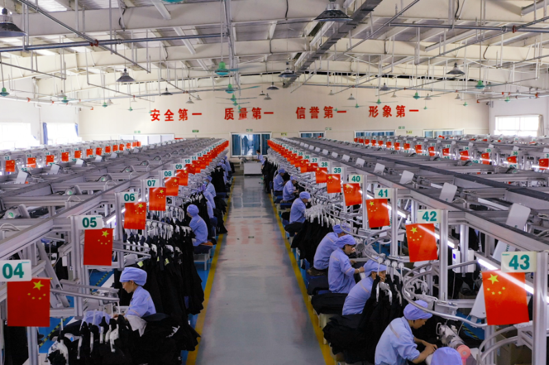中核(宁夏)同心防护科技有限公司工人在生产车间制作服装