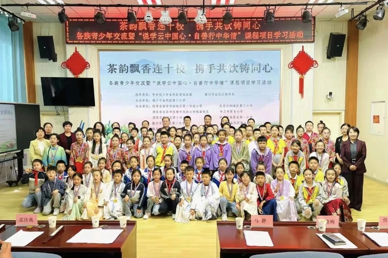 利通区青少年与区内外十校联合开展“茶韵飘香连十校 携手共饮铸同心”各族青少年交流暨“说学云中国心·自善行中华情”课程项目学习活动。