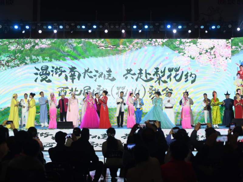 4月12日,沙坡头区举办“漫游南长滩 共赴梨花约”西北民歌(花儿)歌会。