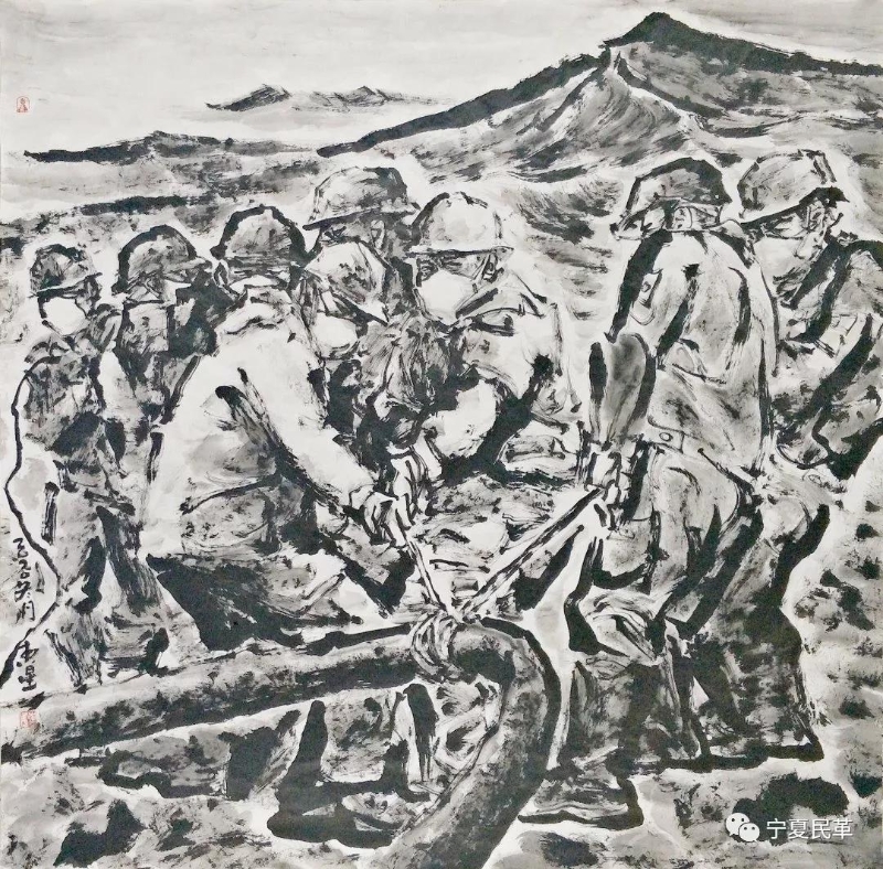 【创作者感言】民革党员、宁夏书画院专业画家李东星:新型冠状病毒感染的肺炎疫情牵动着全国人民的心。当人民的健康遭受威胁时,医护群体的奋力坚守给我们留下深刻印象。而当我看到近2000名工人和管理人员在短短7天建起2.5万平方米的火神山医院时,禁不住为他们喝彩,敬意油然而生,于是决定创作一幅这样题材的作品。通过这幅作品,我主要想表达工人们那种刚毅、坚强、不屈服于困难的精神面貌。整幅作品从开笔到结束,凭着满腔热情,一气呵成,用时5个小时,也算是一个画家用自己的艺术形式向火神山建设者们致敬。