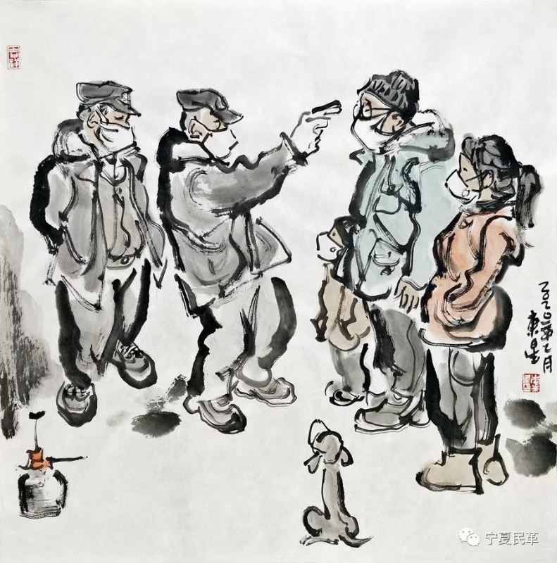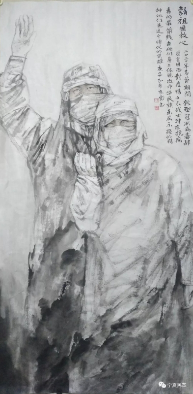 【创作者感言】民革党员、专业画家朱彪:2020庚子年来临之际,新型冠状病毒肆虐神州大地。每天的疫情牵动着每一个中国人的心。当看到“宁夏首批医疗队135名专家赴鄂开展援助”这则新闻时,我心情澎湃,为宁夏感到骄傲,为宁夏人和每一位援助医生大无畏和勇于担当的精神而自豪!带着这种激动的情绪,我连夜创作,完成了这幅《请祖国放心》的中国画作品,尽一份自己在这场阻击战中的责任和义务。