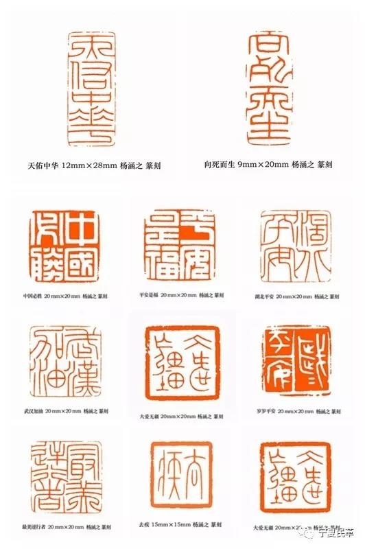 【创作者感言】民革党员、宁夏书画院专业书法家杨涵之(又名杨华):在抗击疫情出现的各种细节与情节中,我们用作品凝聚人们寻常言语难以表达的一种思绪,用书法篆刻家的眼光去观照现实,或许这就是一种责任,一种情怀!我给这组印章起名叫《武汉战疫》,计划刻三十方,下半年出本书,原作捐赠给湖北省博物馆。