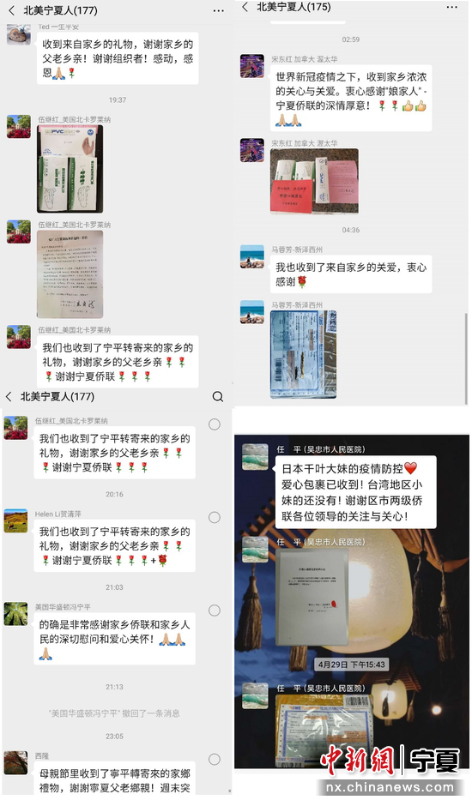 中新网宁夏新闻5月12日电“收到家乡浓浓的关心与关爱,衷心感谢娘家人的深情厚意!”近日,由宁夏侨界捐赠的413份“侨爱心健康包”,承载着祖国和家乡人民的牵挂、关爱和祝福,相继送达美国、加拿大、澳大利亚、意大利、日本等国家的海外侨胞及留学生手中。
