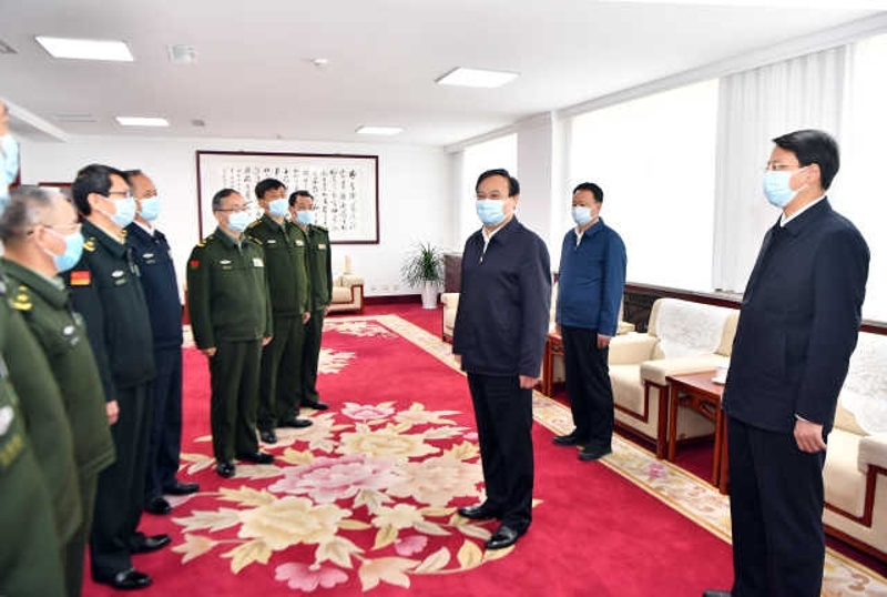 梁言顺来到宁夏军区与军区班子成员交流,了解军区历史沿革、战备训练和参与疫情防控等情况。