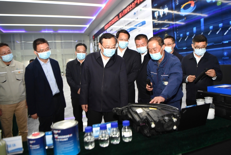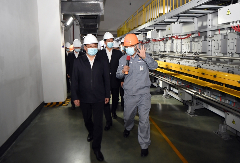 梁言顺来到宁夏中化锂电池材料公司研发中心,了解企业在引进人才、科技创新等方面情况。