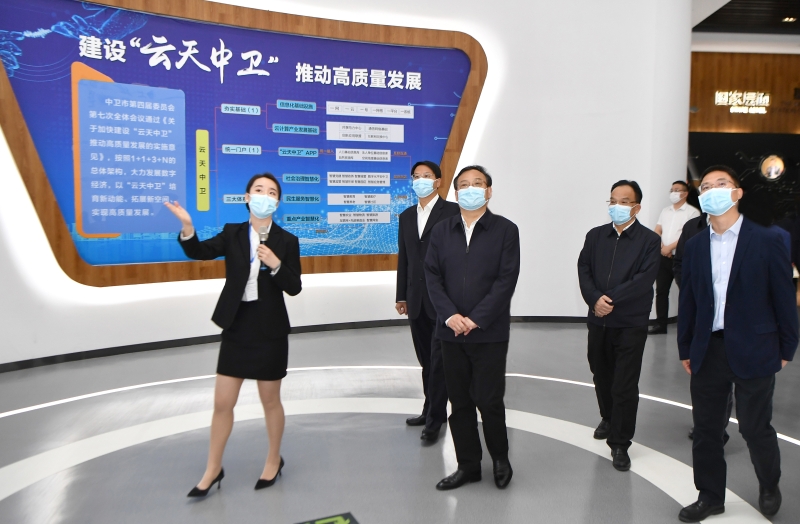 梁言顺在中卫市云展馆,了解云计算和大数据产业发展情况。