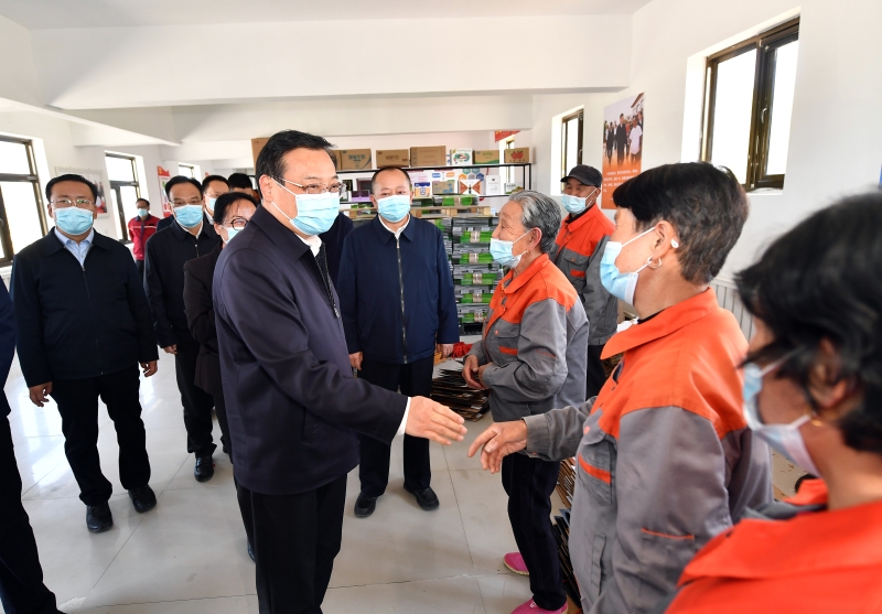 梁言顺来到红寺堡区红寺堡镇弘德村移民就业帮扶车间,同村民们亲切交流。