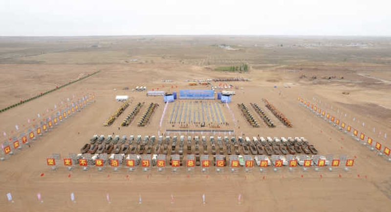 主会场盐池县正泰集团公司6GW新能源装备制造产业园里,大型机械一字列阵、待命而动,建设者们士气高昂、精神振奋。