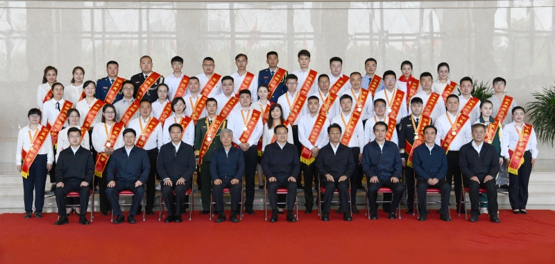 5月23日,梁言顺、张雨浦、崔波等领导接见了受表彰个人和集体代表,并与大家合影留念。宁夏日报记者 左鸣远 摄