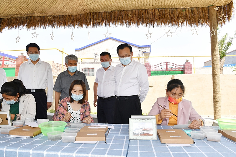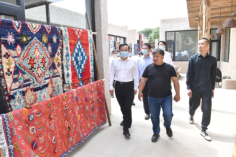 5月28日,梁言顺、崔波等领导来到中卫沙坡头区迎水桥镇何滩村,考察特色街区、研学基地、民宿运营情况。