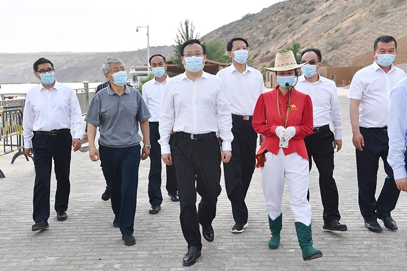 5月28日,梁言顺、崔波等领导来到中卫市沙坡头景区,调研生态保护和文旅融合发展情况。