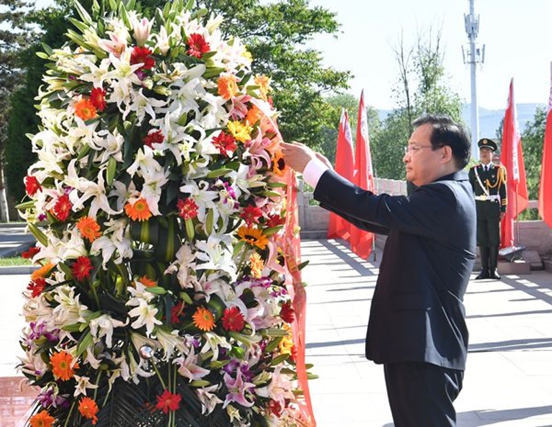 6月15日,自治区党委书记梁言顺带领党委常委张雨浦、陈雍、艾俊涛、雷东生、李金科、石岱、马汉成、陈春平、买彦州、郭建军、赵旭辉、王刚,来到西吉县将台堡红军长征会师纪念园,向红军长征会师纪念碑敬献花篮。
