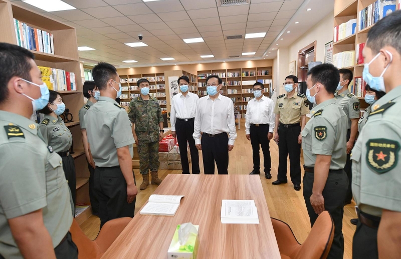 7月31日,梁言顺等领导来到宁夏军区政治工作信息中心了解书香军营建设情况。