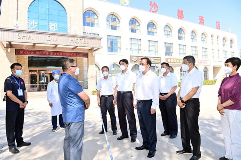8月6日,梁言顺等随机来到中卫市沙坡头区集中隔离酒店暗访督察疫情防控工作,现场指导解决问题。