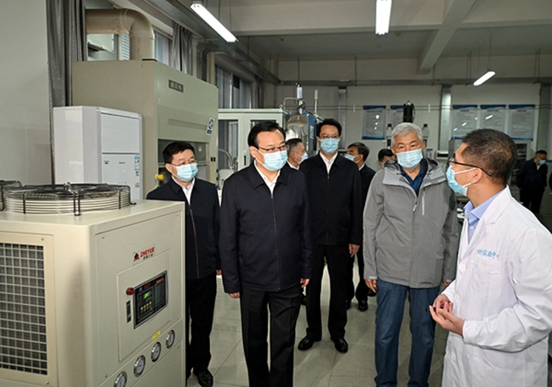 5月4日上午,梁言顺来到北方民族大学“碳基先进陶瓷制备技术”国家地方联合工程研究中心,实地察看实验室建设、产品展示。
