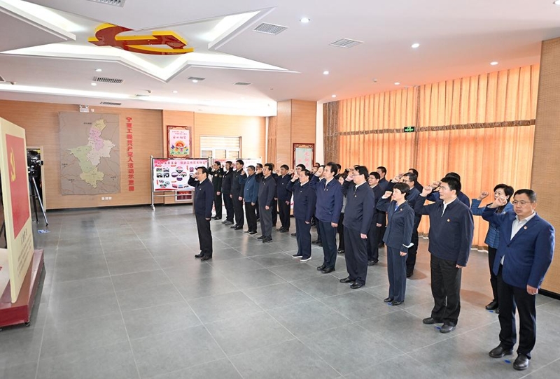 参观结束后,王国生和梁言顺、张雨浦、陈雍等自治区在职省级党员领导干部面向鲜红的党旗,整齐列队、高举右拳,重温入党誓词。