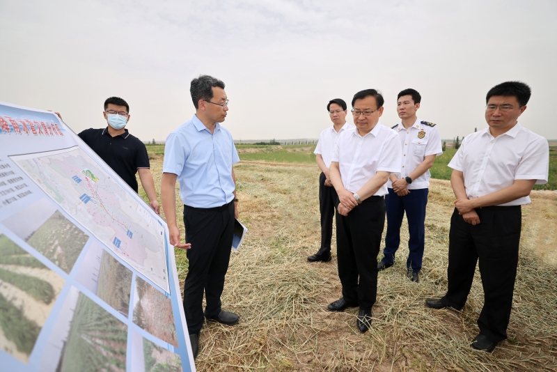 梁言顺在吴忠市红寺堡区柳泉乡,走进田间地头,实地察看农作物受灾及夏粮补种情况。